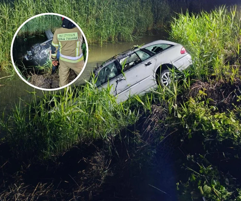 Dworek. Samochód wpadł do kanału, kierowca nie żyje