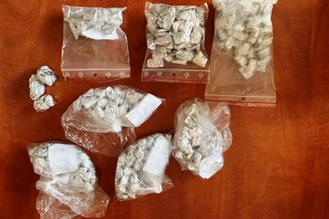 W trakcie działań na Brzeskiej kryminalni znaleźli ukryte w śniegu dwa pojemniki plastikowe z foliowymi zawiniątkami, w których był biały i beżowy proszek. Na parapecie zaś znajdował się kolejny plastikowy pojemnik zawierający 20 zawiniątek z folii aluminiowej z zawartością suszu roślinnego i inne opakowanie, w którym było kilkadziesiąt zawiniątek ze zbryloną białą substancją oraz foliowe woreczki z poporcjowanymi substancjami.