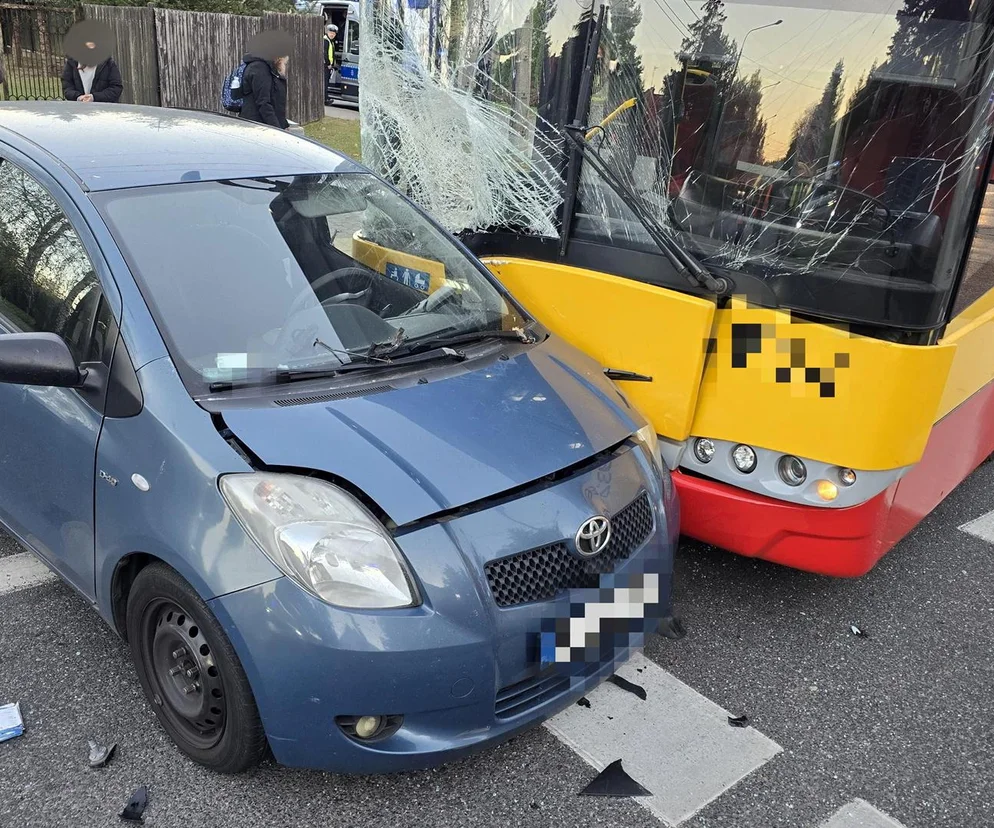 Wypadek w Rembertowie. Autobus 153 zderzył się z toyotą