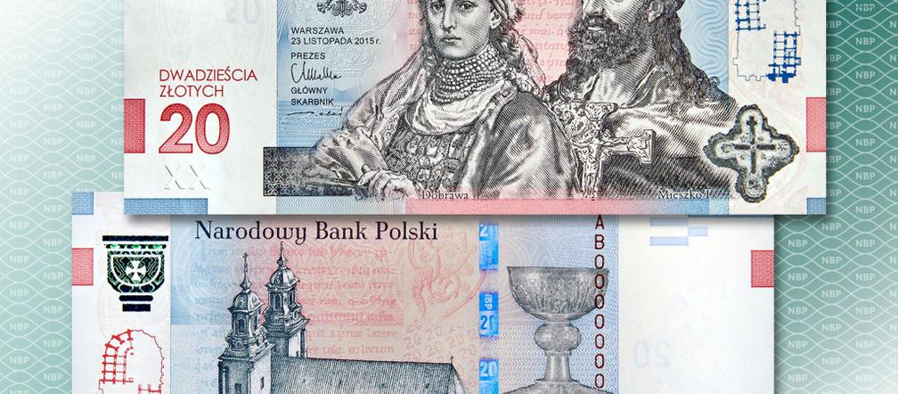 Okolicznościowy 20 zł banknot upamiętnia 1050. rocznicę chrztu Polski. Na przedniej części znalazł się wizerunek Mieszka I i Dobrawy. Na odwrocie znalazł się z kolei wizerunek katedry gnieźnieńskiej.
