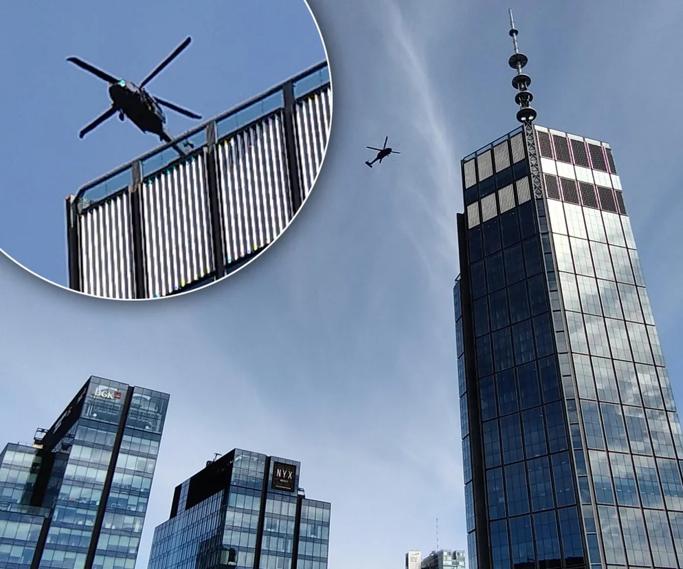 Blackhawk nad Warszawą. Zawisł nad najwyższym wieżowcem. Co się dzieje?