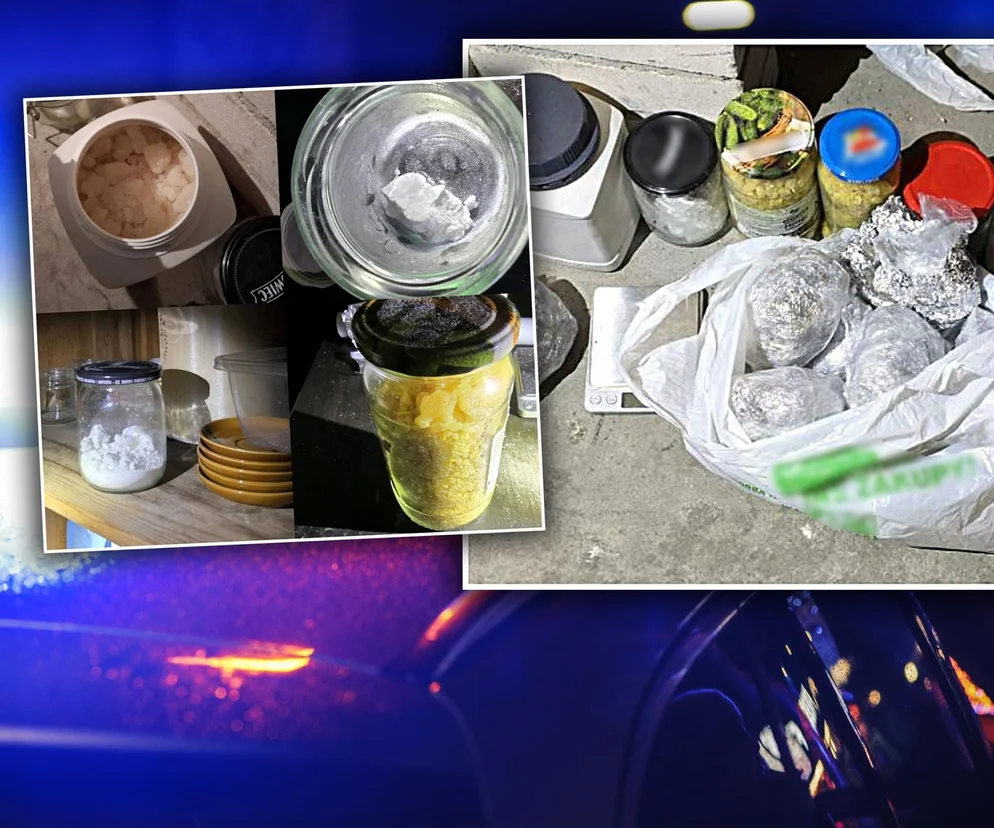 Policjanci postanowili sprawdzić komórkę lokatorską, którą użytkował nastolatek. W piwnicy odkryli narkotyki zapakowane w słoikach, pojemnikach i foliach. Łącznie zabezpieczono blisko 4,5 kg środków odurzających, w tym amfetaminę, kokainę, mefedron i marihuanę.