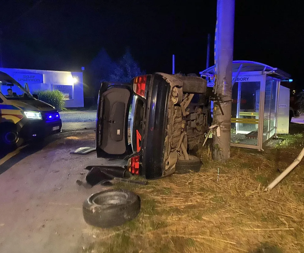 Nowe Racibory. Roztrzaskał bmw na słupie i przystanku. Był pijany