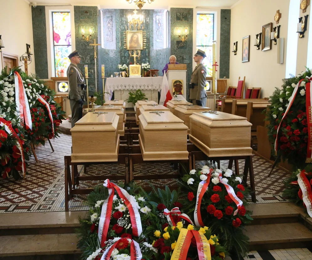 Punktualnie o godz. 12 w piątek, 4 sierpnia, w kościele św. Grzegorza Wielkiego przy ul. Wolskiej 180/182 w Warszawie rozpoczęły się uroczystości pogrzebowe szczątków dziewięciu ofiar Powstania Warszawskiego. Uroczystości miały charakter państwowy. Widok kilku trumien ustawionych w nawie tuż pod ołtarzem chwyta za serce. Dziewięć małych trumien razem. To robi przejmujące wrażenie. Ķażda z nich opatrzona jest tym samym napisem "Ofiara NN Powstania Warszawskiego". W ośmiu trumnach są cywilne ofiary walk 1944 r. W jednej żołnierz Powstania.