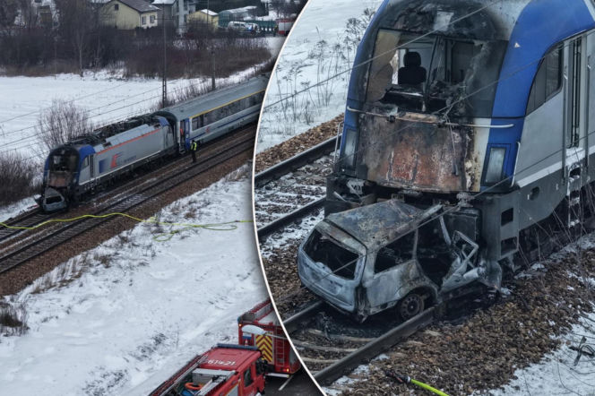 Pociąg i auto są w ogniu! Horror na przejeździe kolejowym pod Warszawą