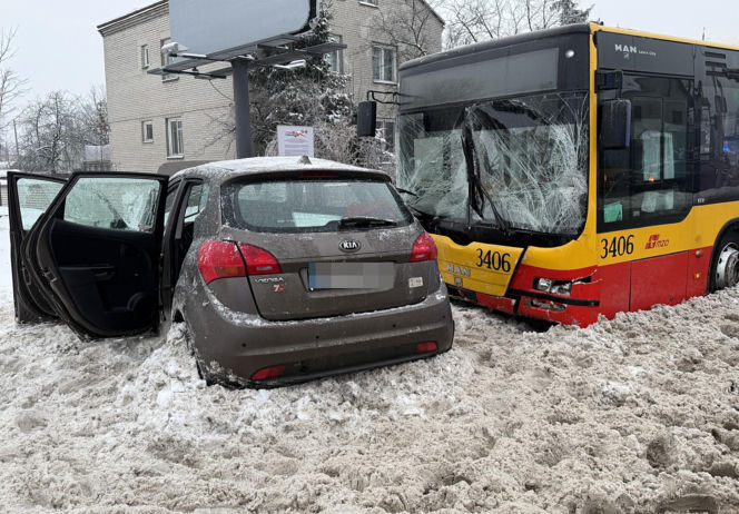 Wypadek autobusu w podwarszawskich Markach. W czwartek (15 stycznia) pojazd komunikacji miejskiej zderzył się z osobową kią na ulicy Marszałka Józefa Piłsudskiego, w rejonie skrzyżowania z ulicą Bandurskiego.