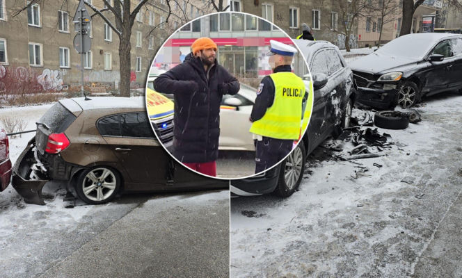 Znany aktor świadkiem kraksy w al. Niepodległości. BMW roztrzaskało zaparkowane auta
