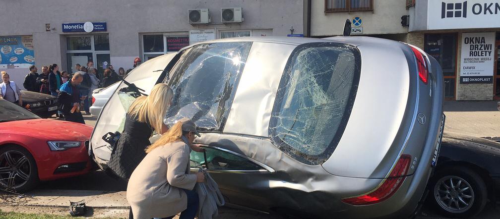 Do zdarzenia doszło przed 14 przy ul. Radzymińskiej 107. Mercedes gnał w kierunku Marek. Nagle kierowca stracił panowanie nad pojazdem, skosił barierki oddzielające pasy ruchu i uderzył w drzewo. Następnie samochód dachował, odbił się jak sprężyna i wylądował na bmw i audi. Przeczytaj także o tragicznym wypadku w Pruszkowie.