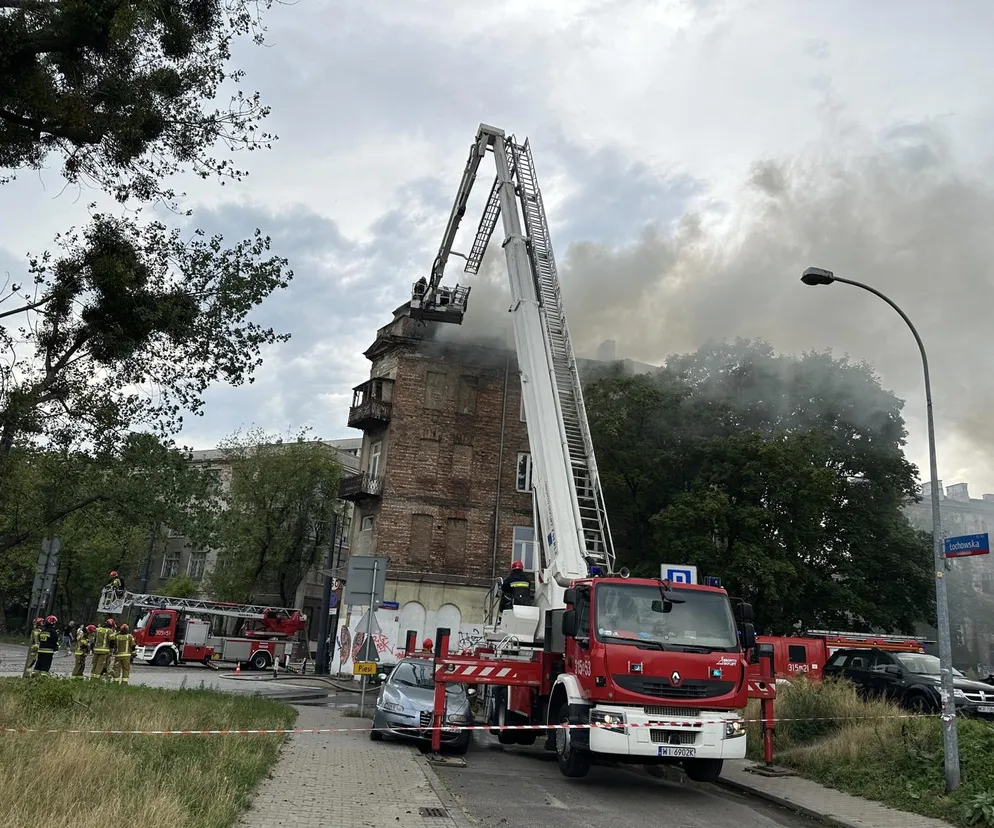 Pożar kamienicy na Pradze-Północ w Warszawie. Z ogniem walczy 40 strażaków