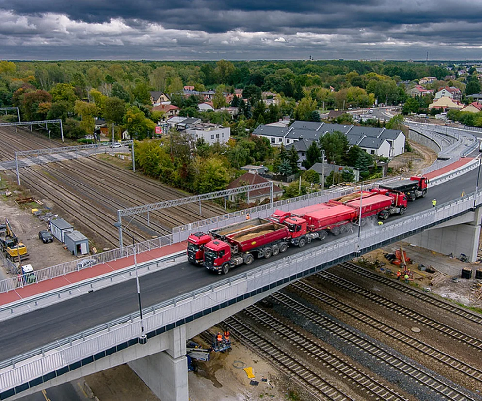 Kolumna wielkich tirów w Rembertowie. Tak testowali nowy wiadukt