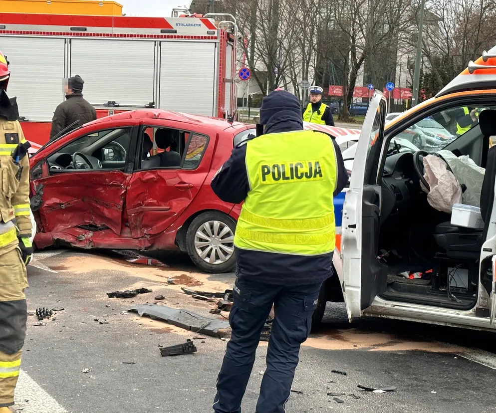 Zderzenie karetki i dwóch aut osobowych na Puławskiej w Warszawie