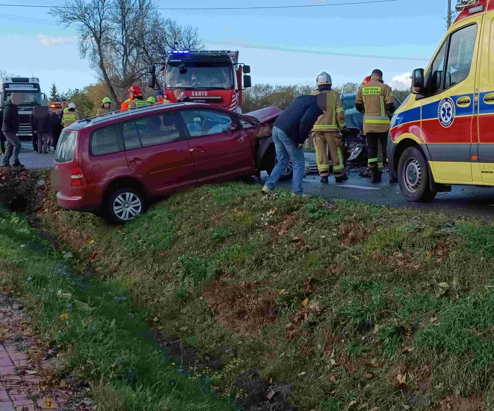 Koszmarna kraksa na drodze pod Siedlcami! W środę, 19 października, w miejscowości Gręzów na trasie Warszawa - Siedlce zderzyły się trzy samochody: dwa osobowe i ciężarówka. Świadkiem tego zdarzenia był reporter "Super Expressu", z którego relacji wynika, że wszystko zaczęło się zupełnie niewinnie i niespodziewanie. Kierujący czerwonym volkswagenem jechał główną trasą i zasygnalizował zamiar skrętu w lewo, ponieważ chciał skręcić na posesję swojego domu. Nie spodziewał się jednak tego, że jego zamiar zignoruje inny uczestnik ruchu! Z naprzeciwka nadciągał bowiem volkswagen sharan, który z ogromną prędkością huknął w skręcającego kierowcę, w wyniku czego doszło do czołowego zderzenia samochodów osobowych. Jakby tego było mało, sharan po zderzeniu z czerwonym volkswagenem obrócił się na jezdni i został wyrzucony na przeciwległy pas ruchu. To nie zakończyło serii niefortunnych zdarzeń na jezdni. Na wyrzuconego na jezdnię sharana najechał pędzący od strony Siedlec samochód ciężarowy! Jak można zobaczyć na zdjęciach w naszej galerii, wypadek wyglądał niezwykle groźnie. Maski samochodów osobowych zostały zupełnie zmiażdżone. Fragmenty roztrzaskanych zderzaków leżały rozrzucone po całej jezdni, a czerwony volkswagen niemal stoczył się do rowu przy ulicy! Na miejscu natychmiast pojawiły się odpowiednie służby: policja i służba drogowa. Do wypadku na sygnale w karetce pogotowia przyjechał także zespół ratowników medycznych, który od razu postanowił przetransportować troje rannych dzieci do szpitala.