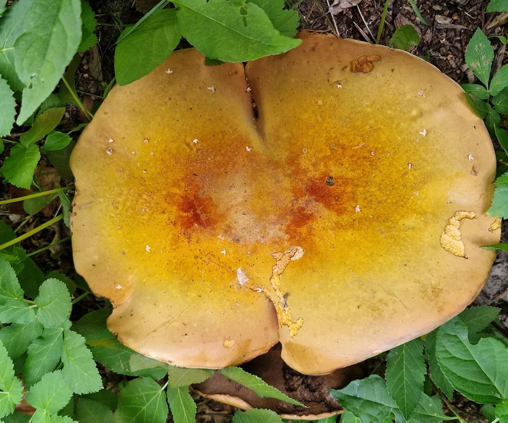 Na jednym z bocznych, mniej uczęszczanych szlaków, w cieniu drzew, pojawił się niezwykły gość z królestwa grzybów. I to nie byle jaki − modroborowik ponury, którego kapelusz mierzył ponad 20 centymetrów średnicy, robiąc wrażenie nawet na osobach, które widziały w życiu niejeden okaz.