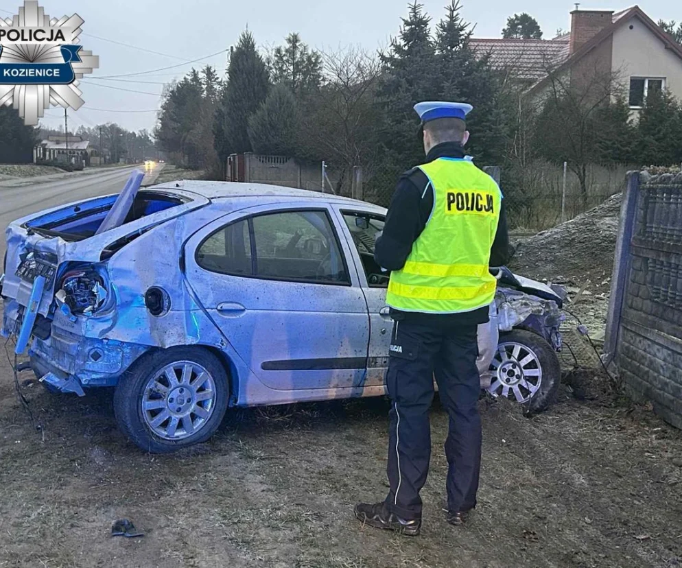 22-letni mieszkaniec powiatu kozienickiego stracił panowanie nad pojazdem, zjechał na przeciwległy pas ruchu, a następnie uderzył w ogrodzenie jednej z posesji. W wyniku zdarzenia zniszczeniu uległo 6 betonowych przęseł oraz 5 betonowych słupków ogrodzeniowych. Siła uderzenia była znaczna, a skutki zdarzenia pokazują, jak niebezpieczne może być lekceważenie warunków drogowych.