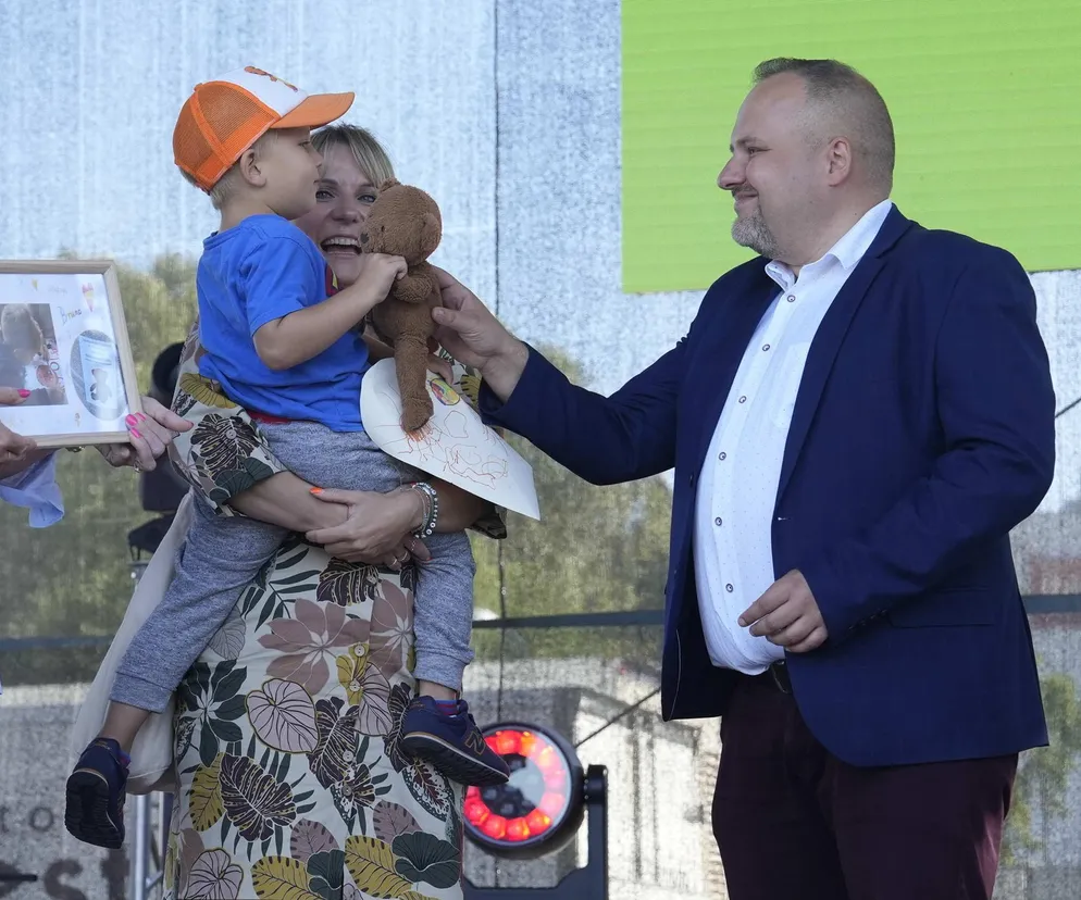 Bruno na rękach mamy Doroty (42 l.) w towarzystwie babci Agnieszki (59 l.) wkroczył na scenę i chwycił w objęcia „misia Zdzisia” przekazanego przez pana Karola. – Sam mam dzieci, troszeczkę starsze niż Bruno i doskonale wiem, jak dziecko przywiązuje się do zabawek i jak tęskni, gdy którąś zgubi. Więc gdy zobaczyłem samotnego misia leżącego na jezdni, zaopiekowałem się nim – mówił kierowca linii 158.