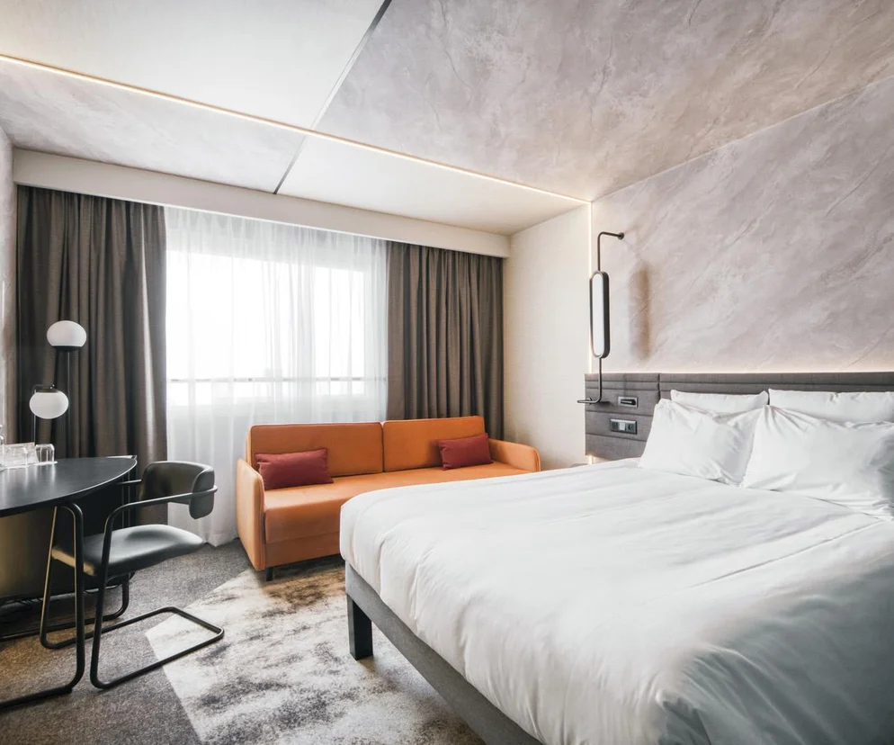Novotel przeszedł przebudowę! Znany wszystkim hotel w Warszawie zyskał nowe wnętrza. Remontem, za który odpowiadał Neo Świat, objęto 307 pokoi oraz korytarzy na 12 piętrach gościnnych. Co się zmieniło? Wymieniono instalacje sanitarne i elektryczne, a w wykończonych pokojach stanęły nowe meble przygotowywane na zamówienie.