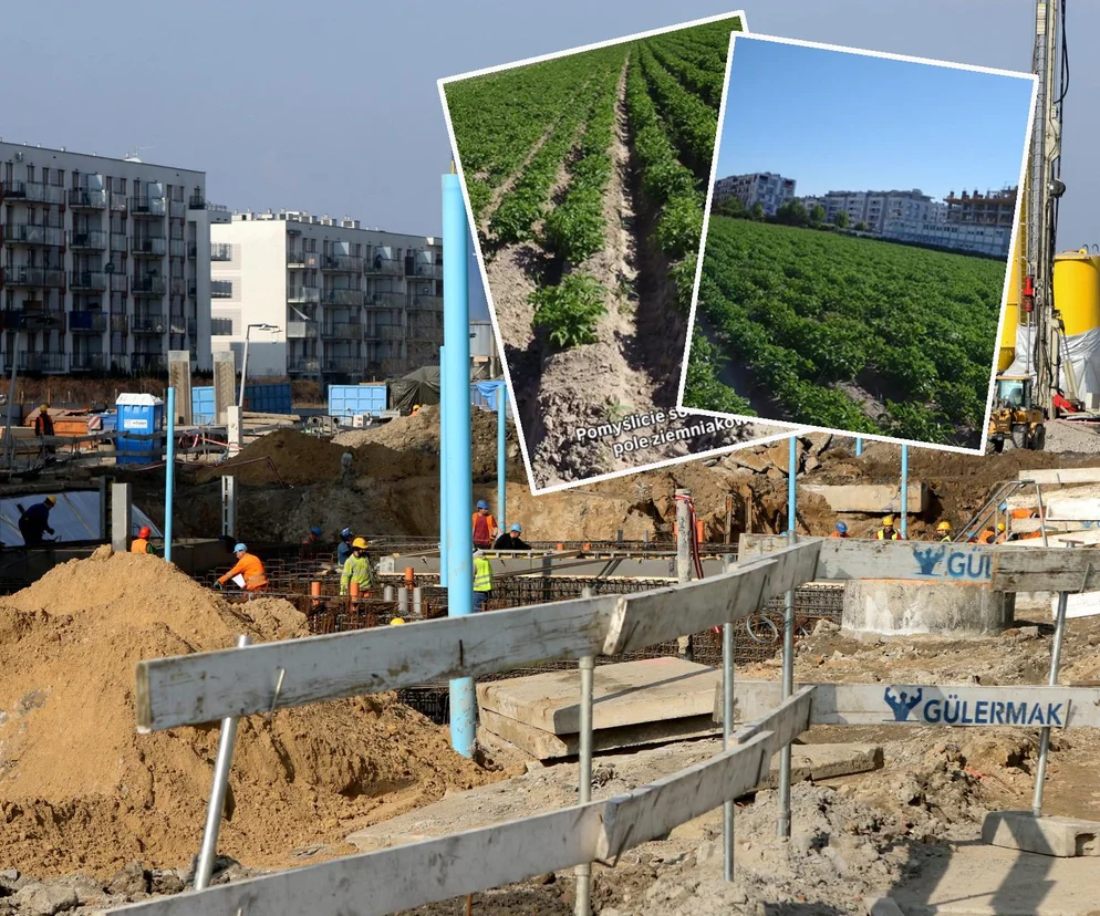 Niecodzienne obrazki w Warszawie. Obok nowej stacji metra rośnie pole ziemniaków