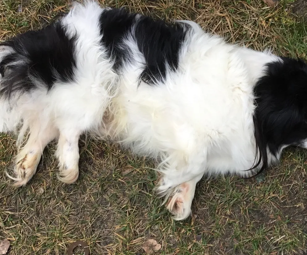 Bezbronny pies Pekinek konał w rowie