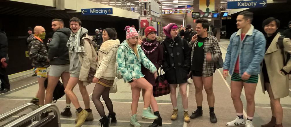 Jak co roku, uczestnicy "dnia bez spodni w metrze" spotykali się na stacji metra Wilanowska, na pasażu o 16. "Jest to dobre miejsce żeby spakować dolne partie ubrania do plecaków, toreb, innych reklamówek i wyruszyć w podróż ;)" - piszą organizatorzy.