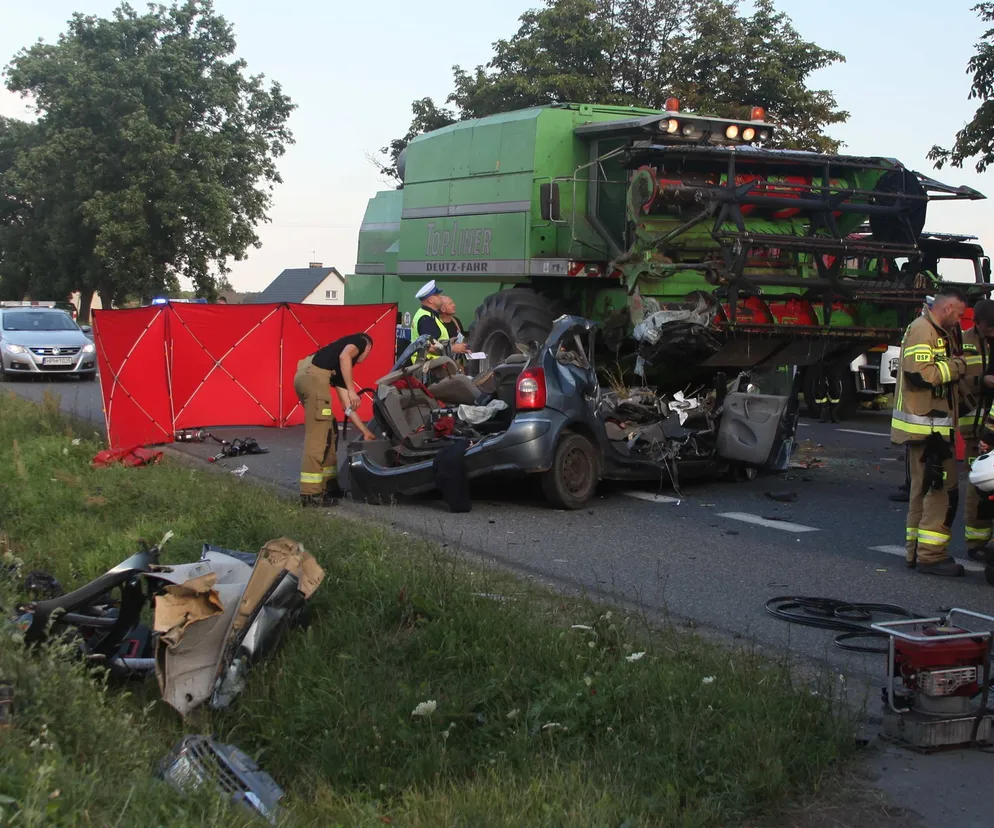 Widok zmiażdżonego samochodu osobowego stojącego przed kombajnem zbożowym z odciętym dachem mrozi krew w żyłach. Już kiedy na miejsce wypadku przyjechały miejscowe jednostki druhów z Ochotniczej Straży Pożarnej, było wiadomo, że w doszczętnie zmiażdżonym samochodzie osobowym nikt nie przeżył. I tak faktycznie było, kierujący citroenem 38-letni mieszkaniec Warszawy zmarł na miejscu.