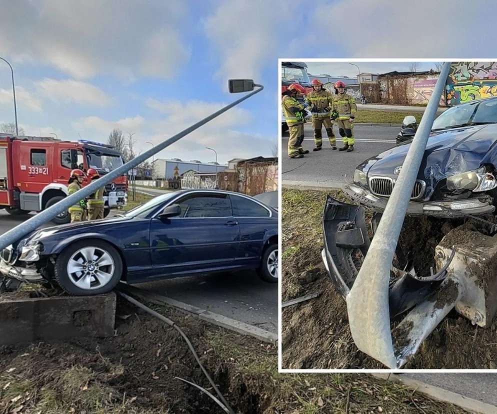 Do kraksy doszło w sobotę, 13 grudnia, w Radomiu. Z ustaleń policji wynika, że 24-letni kierowca bmw na ul. Wajdy nie zachował należytej ostrożności, stracił panowanie nad autem i uderzył w słup oświetleniowy. Potężna lampa uliczna aż zgięła się wpół i z impetem runęła na auto.