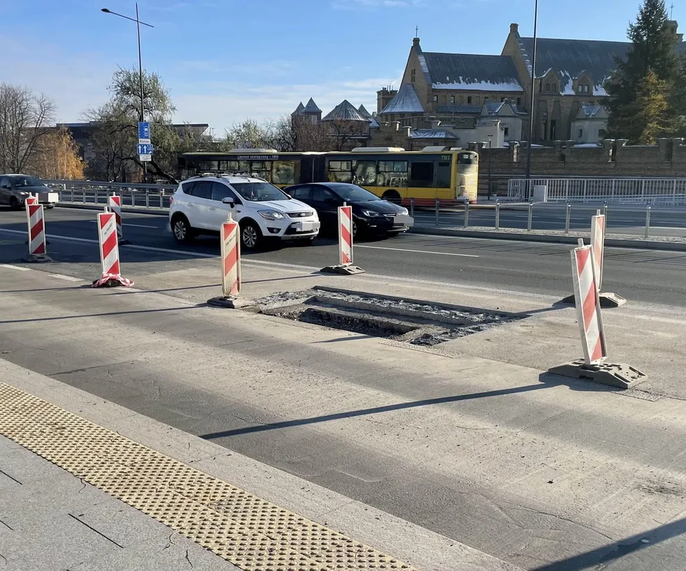 Kierowcy jadący trasą Łazienkowską ze zdumieniem obserwowali nowe ograniczenie i robotników wykuwających dziurę w nowym wiadukcie. Na północnej estakadzie znów pojawił się ciężki sprzęt i znane wszystkim zwężenia. Robotnicy ogromnym młotem zaczęli kuć asfalt, który niedawno został tam wylany. - O co chodzi?! Znów remontują? - pytali poirytowani kierowcy.
