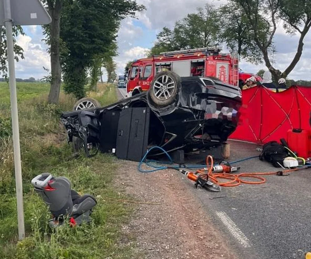 Śmiertelny wypadek na drodze pod Płockiem. 33-latek dachował lexusem. Nie żyje. Ranna kobieta i dzieci