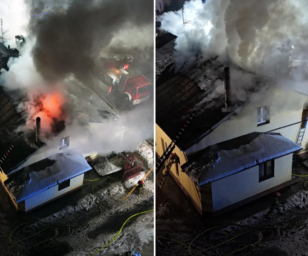 - Ogień objął poddasza trzech połączonych budynków, ewakuowano pięć osób.