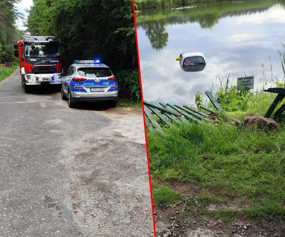 Spokojny sobotni poranek nagle przerwał huk uderzenia i głośny plusk wody. 76-latka za kierownicą fiata nagle straciła panowanie nad autem, przebiła płot i wylądowała prosto w pobliskim stawie. Do wypadku doszło około godziny 8.