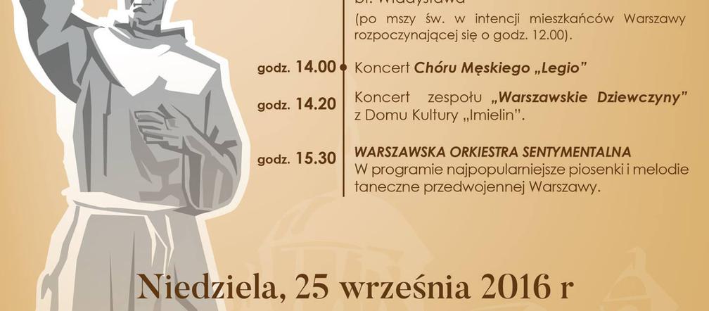 Od godz. 10 będzie działał tam jarmark z rękodziełem i produktami regionalnymi. Na godz. 13.40 przewidywane jest złożenie kwiatów pod pomnikiem bł. Władysława. Odbędzie się ono po mszy św. w intencji mieszkańców Warszawy, rozpoczynającej się o godz. 12.