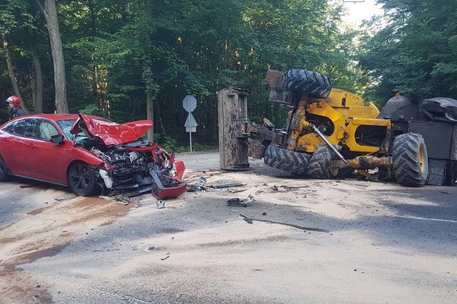 Do zdarzenia doszło o godz. 7 rano w poniedziałek. Pędząca z ogromną szybkością honda zaczęła wyprzedzać kolumnę jadących pojazdów. Nagle 27-letni Piotr G. spostrzegł przed sobą skręcającą w lewo koparkę. Nacisnął do ziemi pedał hamulca. Niestety i tak wbił się z impetem w maszynę. Zderzenie było tak potężne, że stalowy kolos przewrócił się na bok, a z auta zostały zgliszcza. Na miejsce wypadku wezwano pogotowie ratunkowe, straż pożarną i policję. Świadkowie zdarzenia myśleli, że kierowca osobówki zginął na miejscu. Ale zanim służby dotarły na miejsce, 27-latek wykaraskał się ze zmiażdżonego auta o własnych siłach.