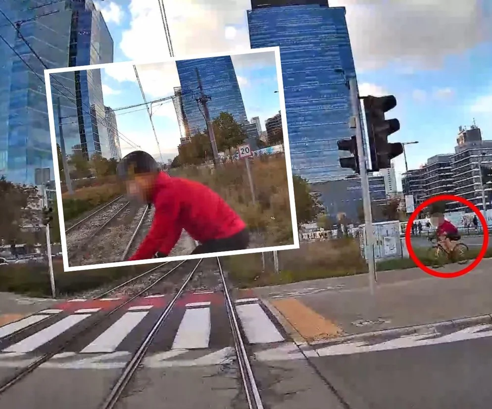 Na filmie widać, jak rowerzysta nadjeżdża od strony ścieżki rowerowej, nie zatrzymując się przed sygnalizatorem. Pomimo wyraźnie widocznego czerwonego światła, mężczyzna wjeżdża na pasy tuż przed nadjeżdżający tramwaj. Motorniczy nie ma szans na zatrzymanie pojazdu na czas. Dochodzi do potrącenia, po czym rowerzysta upada na ziemię. Na szczęście cyklista przeżył zdarzenie, jednak jego zachowanie mogło skończyć się tragicznie.