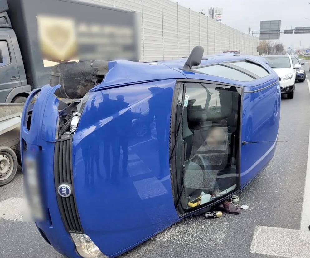 Warszawa. Pijany senior huknął w przyczepkę, jego auto runęło na bok