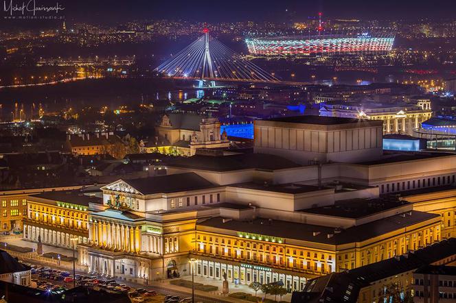 Każdej nocy cała Warszawa rozbłyska milionem świateł. Wieczorne piękno stolicy najlepiej podziwiać z lotu ptaka.