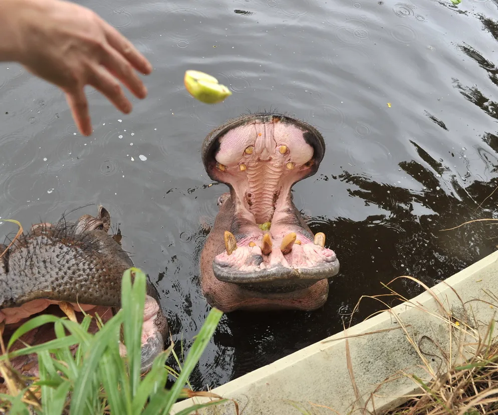 - Pelagia jest łagodna, trochę podniosła, często ma wzrok pełen zażenowania, kiedy rzucamy jej zabawki. To prawdziwa dama. Relacja Pelagii z Hugonem jest bardzo burzliwa, on jest jednak 22 lata młodszy od niej i działa jej na nerwy. Próbuje ją zaczepiać, ale ona pozostaje niewzruszona. Codziennie sprawdzamy, czy hipopotamy są zdrowe, oglądamy zęby, myjemy je, dajemy im jedzenie i sprzątamy. Pelagia przybyła do nas z prosto Paryża! Może stąd jej francuskie maniery - zdradziła nam Natalia Gierych, opiekunka Pelagii i Hugona z warszawskiego zoo.