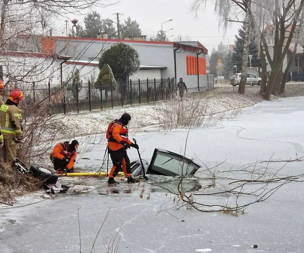 Mercedesem wjechał do stawu! Samochód zniknął w lodowatej wodzie