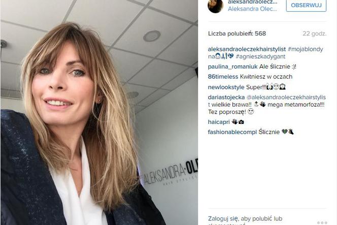 Przemiana aktorki jest zaskakująca. Przyzwyczailiśmy się do jej ciemnobrązowych włosów, w których zresztą było jej bardzo do twarzy. Dygant jednak postanowiła coś w sobie zmienić i zdecydowała się na... rozjaśnienie włosów na blond.