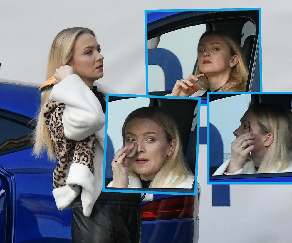 Aktorka zaparkowała tuż przy remontowanej Sali Kongresowej i wyraźnie spieszyła się na spotkanie w pałacu, w którym mieści się m.in. Teatr 6. Piętro, w którym gra. A że nie zdążyła wcześniej się umalować, zrobiła to już samochodzie. Basia Kurdej-Szatan wyciągnęła kredkę, by podkreślić brwi, na usta nałożyła matową szminkę, przypudrowała nosek i koniecznie użyła perfum, bo przecież to równie ważne, jak makijaż.