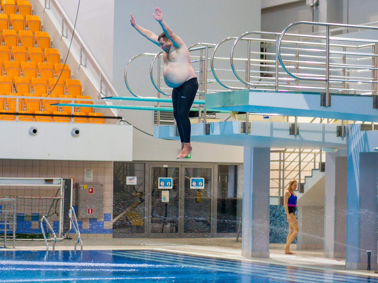 Adam mierzy 198 cm wzrostu, a jego waga wynosi 120 kg. Przy nieudanym skoku zderzenie z wodą mogłoby być dla niego bardzo bolesne i wywołać takie basenowe tsunami. - Śmierci się nie boję - śmieje się rolnik.