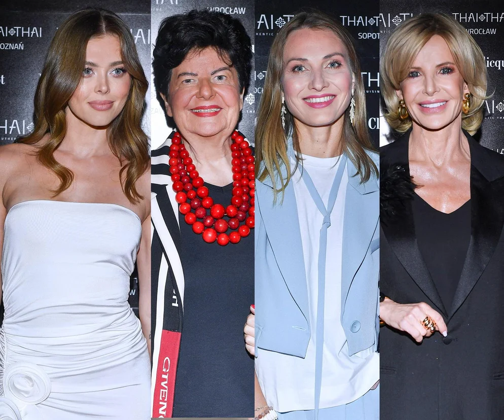 Joanna Senyszyn zaprezentowała eklektyczny styl: marynarka w czarno-białe basy, sportowe buty i oczywiście ogromne czerwone korale, czyli jej znak firmowy. Z kolei Joanna Opozda postawiła na lśniącą biel. Do długiej sukni z kwiatkiem (?) w pasie doszły eleganckie sandały i "druciana" torebka. Joanna Racewicz wybrała zupełnie inny styl. Była gwiazda TVP ubrała się w czerń. I to tak na maksa! Konsekwentnie. Cała garderoba była czarna: żakiet, sukienka, buty, torebka... Na uwagę zwróciło też nowe uczesanie Racewicz. Całość dała doskonały efekt. Wspomniane trzy Joanny wyglądały wspaniale, ale kolejna gwiazda o tym imieniu także nie była gorsza. Joanna Moro w swojej kreacji prezentowała się i elegancko, i nieszablonowo jednocześnie. Połączyła bowiem biel z jasnym błękitem. Przy nieco "diabelskiej" Joannie Senyszyn przypominała anioła. W naszej galerii prezentujemy zdjęcia z imprezy z okazji 15-lecia restauracji Thai Thai. Uspokajamy, na zdjęciach nie widnieją same Joanny.