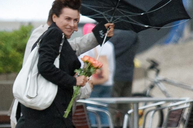Aktorce znanej z serialu "Lekarze" weekend w Darłowie się nie udał. Słońce schowało się za chmurami, a z nieba zamiast żaru, lał deszcz. Na dodatek wiało niemiłosiernie. Cóż, po prostu Stenka trafiła na tradycyjne polskie lato. Nawet na chwilę nie wskoczyła w kostium kąpielowy, by się poopalać i popluskać w Bałtyku. Ale była twarda, chciała chociaż pospacerować brzegiem morza. Łatwo nie było, wiatr robił, co chciał, z rozłożonym parasolem.