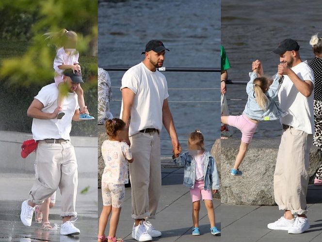 Maciej Pela z córeczkami nad Wisłą