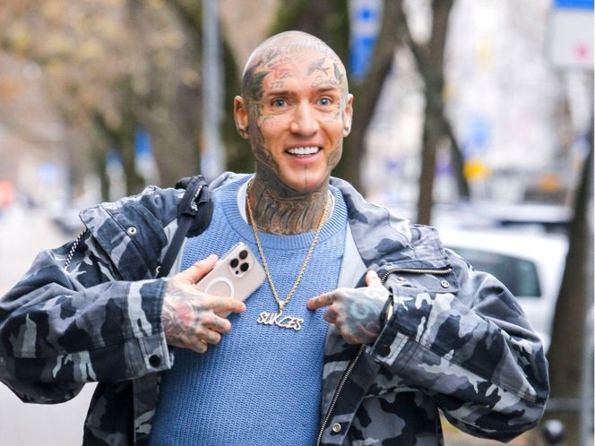 Autor: Mężczyzna, Sylwetka, Buty Męskie, Buty Białe, Spodnie Różowe, Tatuaże, Łysy, Pudelek Pink Party, Pudelek, Czerwiec 2025, Pudelek Pink Party 2025, Tatuaże Na Całym Ciele, Stifler/ AKPA