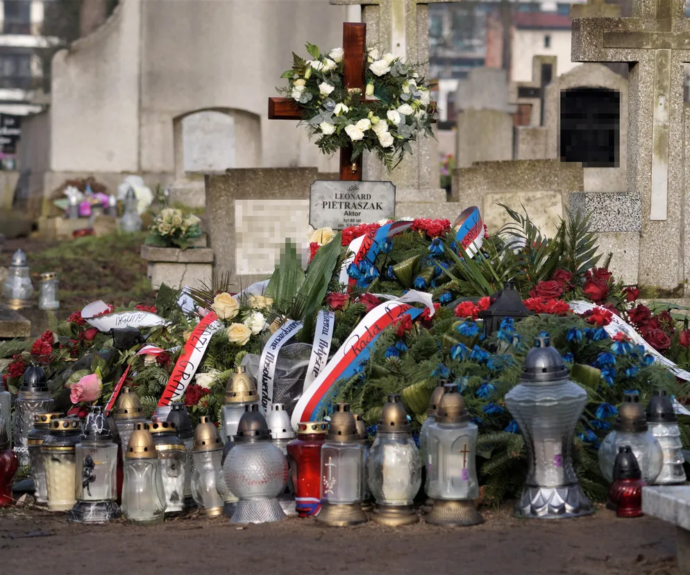 Artysta spoczął na Cmentarzu Starofarnym w Bydgoszczy, obok swojej mamy Janiny. Jak można się spodziewać, wokół miejsca jego pochówku nadal znajduje się wiele wieńców oraz zniczy. Widać, że niektóre ozdoby nagrobne są nowe, co jasno wskazuje, że stale ktoś odwiedza aktora. Uwagę zwraca szarfa przy jednym z wieńców, na której wypisano chwytające za serce słowa. To cytat z "Hamleta" Williama Szekspira: