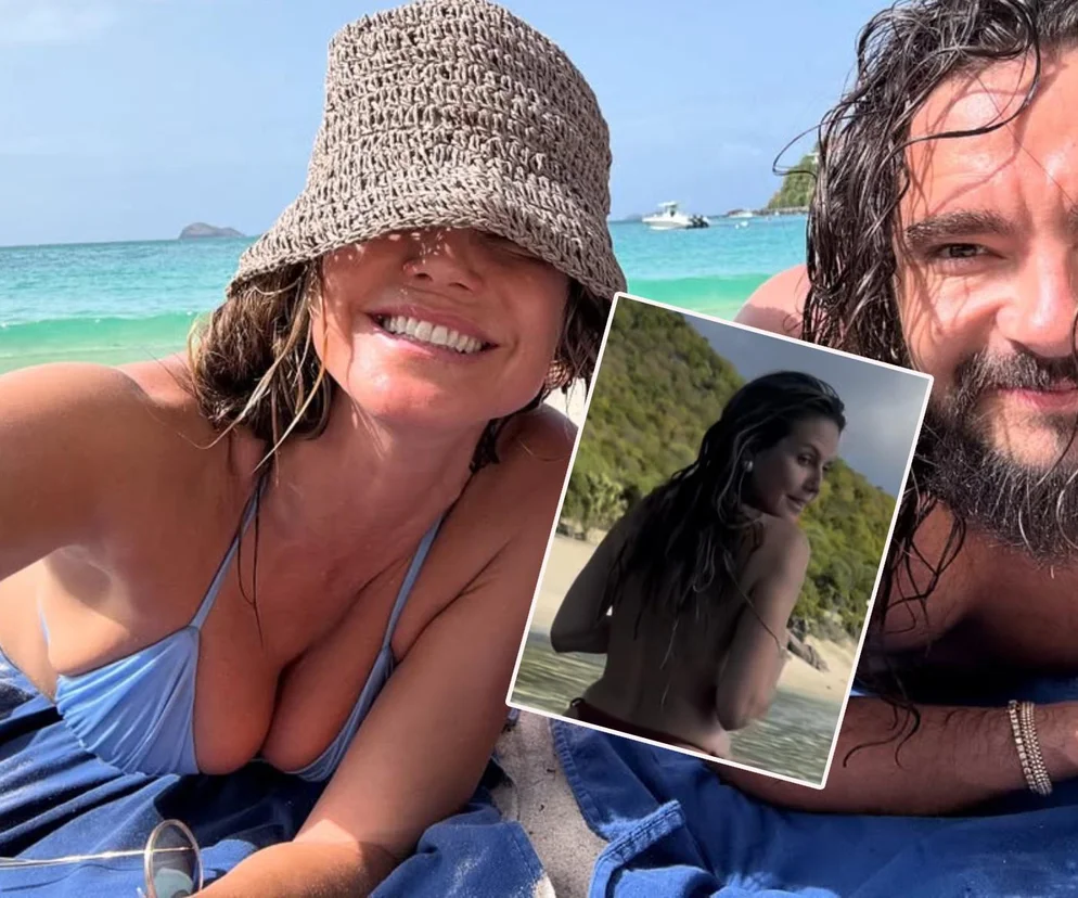 Najpierw pływała niemal bez niczego na sobie, a po półnagiej kąpieli odpoczywała na piasku z dużo młodszym mężem u boku, w którego jest wpatrzona niczym w obrazek. 16 lat różnicy wieku zupełnie nie robi wrażenie ani na Heidi, ani na Tomie.