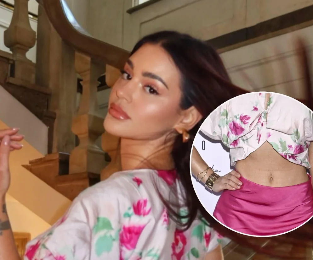 Sięgnęła po pełne energii zestawienie - różową spódnicę o mocnym, cukierkowym odcieniu połączyła z kusym topem w kwiaty. Góra miała efektowny krój, a wiosenny wzór świetnie pasował do oliwkowej karnacji Honoraty.
