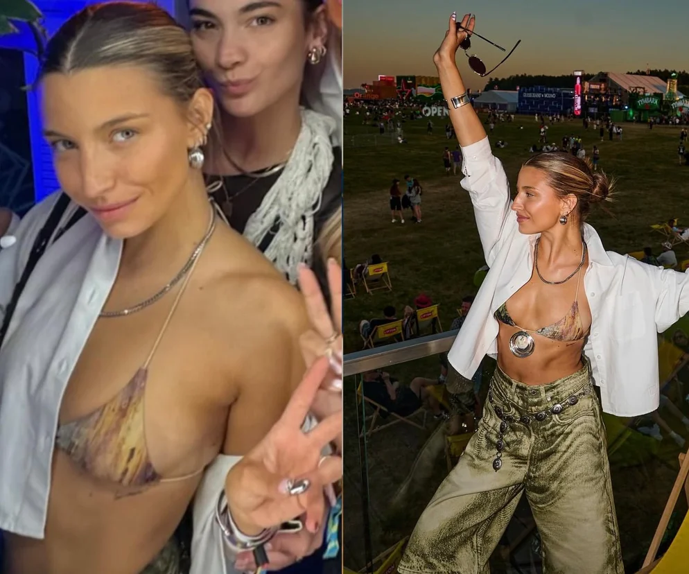 Festiwal Open’er w Gdyni to już klasyk polskiego sezonu muzycznego. Tysiące ludzi, cztery dni koncertów największych światowych gwiazd, strefy marek, foodtrucki, pole namiotowe i niepowtarzalny klimat nadmorskiej beztroski. A do tego – obowiązkowo – moda. I to nie byle jaka. Stylówki z Open’era od lat są fotografowane, komentowane i kopiowane. Jedni idą w styl boho, inni w rave, jeszcze inni – jak Julia Wieniawa – w pełne odważnych cięć i nagości. Ona doskonale wie, jak przyciągnąć uwagę. Na jednym z festiwalowych eventów pojawiła się w stylizacji, która z miejsca wywołała emocje w sieci. Aktorka miała na sobie ultra-mały top przypominający artystycznie wycięty liść albo miniaturowy kawałek jedwabiu, który ledwo przykrywał jej ciało. Do tego szerokie spodnie w kolorze butelkowej zieleni, rozpięta biała koszula, ciężkie buty i odważna biżuteria.