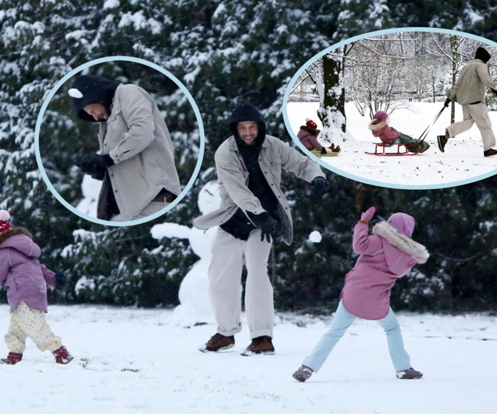 Zobaczcie w naszej galerii, jak Maciej Pela szaleje z córkami na sankach. Tata na medal?