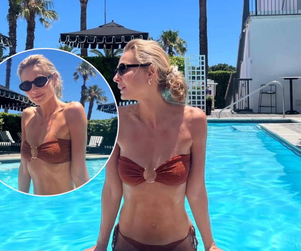 W tle widać palmy, niebo jest bezchmurne, a ona piękna i jaka smukła. Na pierwszym planie znalazł się umięśniony brzuch 45-latki. WOW!
