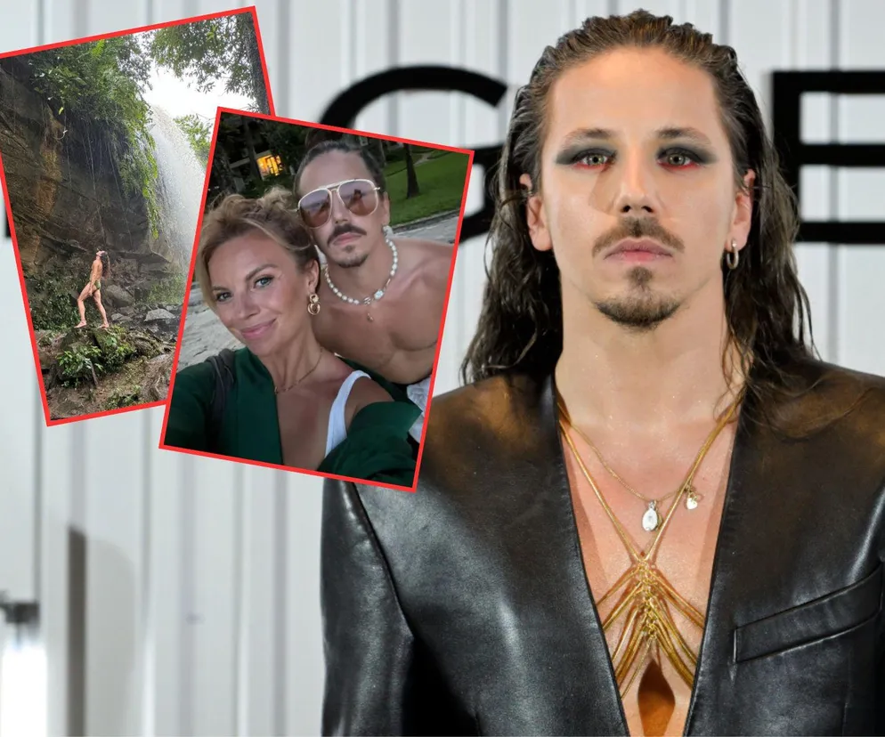 Michał Szpak niczym Tarzan pręży się przy wodospadzie